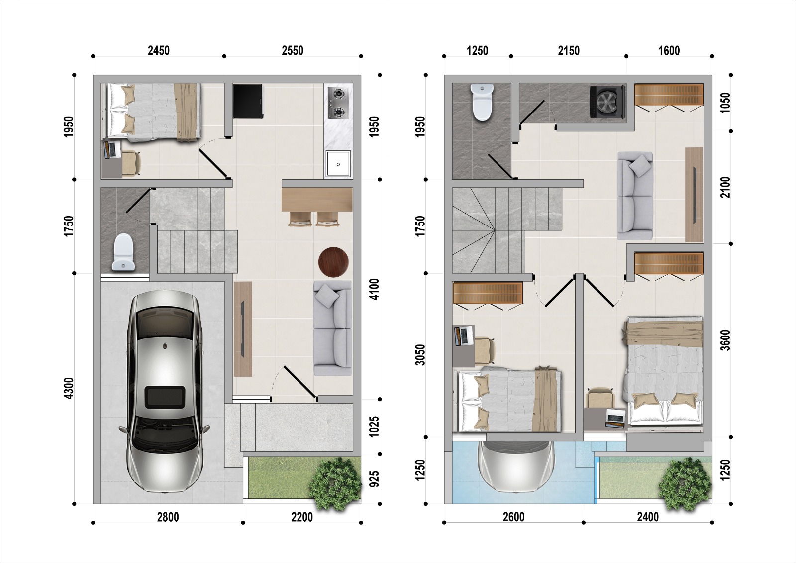 RUMAH 2 LANTAI KONSEP APARTHOUSE - 3 KAMAR TIDUR